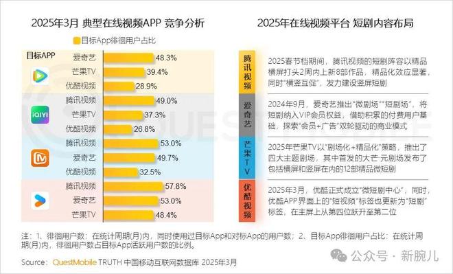在线视频平台间竞争愈发激烈,行业头部玩家纷纷通过“长短结合”重构内容护城河,同时打造差异化,以应对用户争夺战。