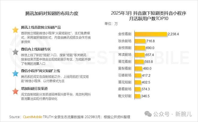 短剧竞赛升级,腾讯新上线“火星短剧社” 和 “阅文短剧” 两款模式不同的短剧小程序,强化竞争力。