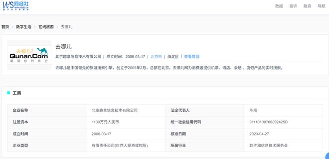 据网经社企业库显示,去哪儿是北京趣拿信息技术有限公司,法定代表人为陈刚。
