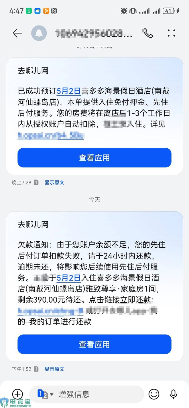 开云官方-用户投诉“去哪儿”在平台订酒店取消失败 未入住被扣款