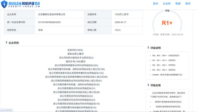 据网经社“企业风险评级系统”显示,“去哪儿”所属北京趣拿信息技术有限公司,风险评级为R1+,公司目前处于低风险。