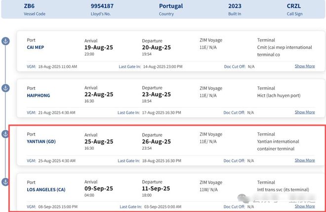 其中,深圳盐田港离港时间为8月26日,预计到达洛杉矶港的到港时间为9月9日开云官方。